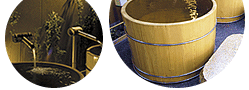 「一休」の建物の西側は、夕暮れの風情を背景にして、木の爽やかな薫りと優しい肌ざわりが心地よく心と体を癒してくれる、清々しい木のゾーン。日本では昔から木のお風呂が一般的。心地よさの原体験としてある木質ならではのくつろぎ感は、他には代え難いものです。広々とした浴槽の中で手足を思い切り伸ばして暖まる。心から”ひとやすみ”出来る瞬間です。 |
